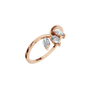 Inspired by the effortless grace found in nature, this ring features thoughtfully woven elements that mimic the harmony of vines and blossoms. ‘The Living Vow’ evokes the beauty of slow growth and the strength of quiet endurance. A whimsical twist from a traditional bezel, Poppy features an open bezel setting with ornate compass set tulip flourishes. Because the design draws from nature’s beauty, it pairs wonderfully with outdoor or meaningful celebrations.