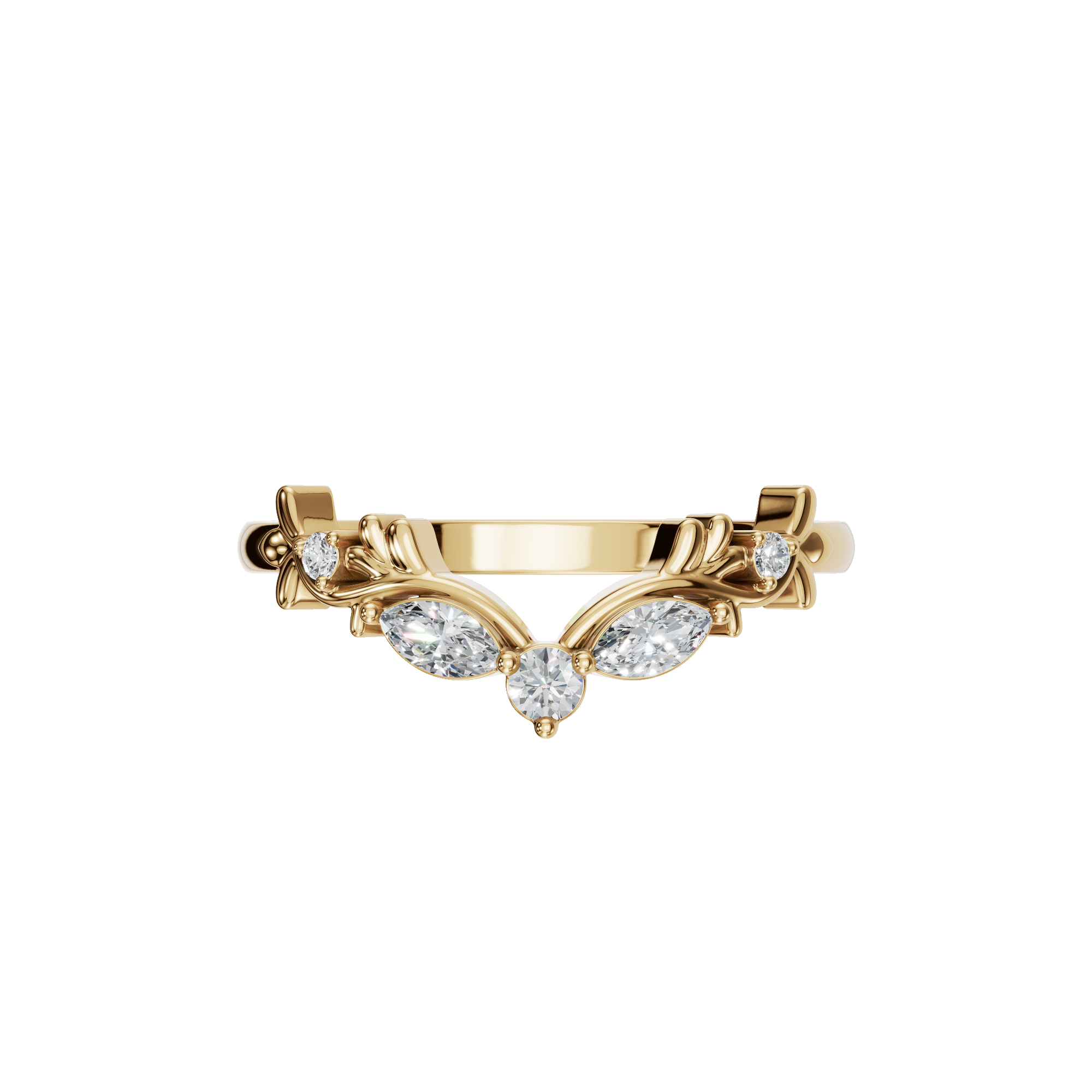 Step into timeless elegance with this Vintage-Style Gold Lab Grown Diamond Tiara Ring, a piece that captures the romance of old-world craftsmanship with a modern glow. Designed to echo the graceful silhouette of a royal crown, this ring is perfect for those who love jewelry that feels both meaningful and unforgettable. At the center, a trio of dazzling diamonds-two marquise-cut stones embracing a round brilliant diamond-creates a soft tiara shape that symbolizes beauty, strength, and devotion.
