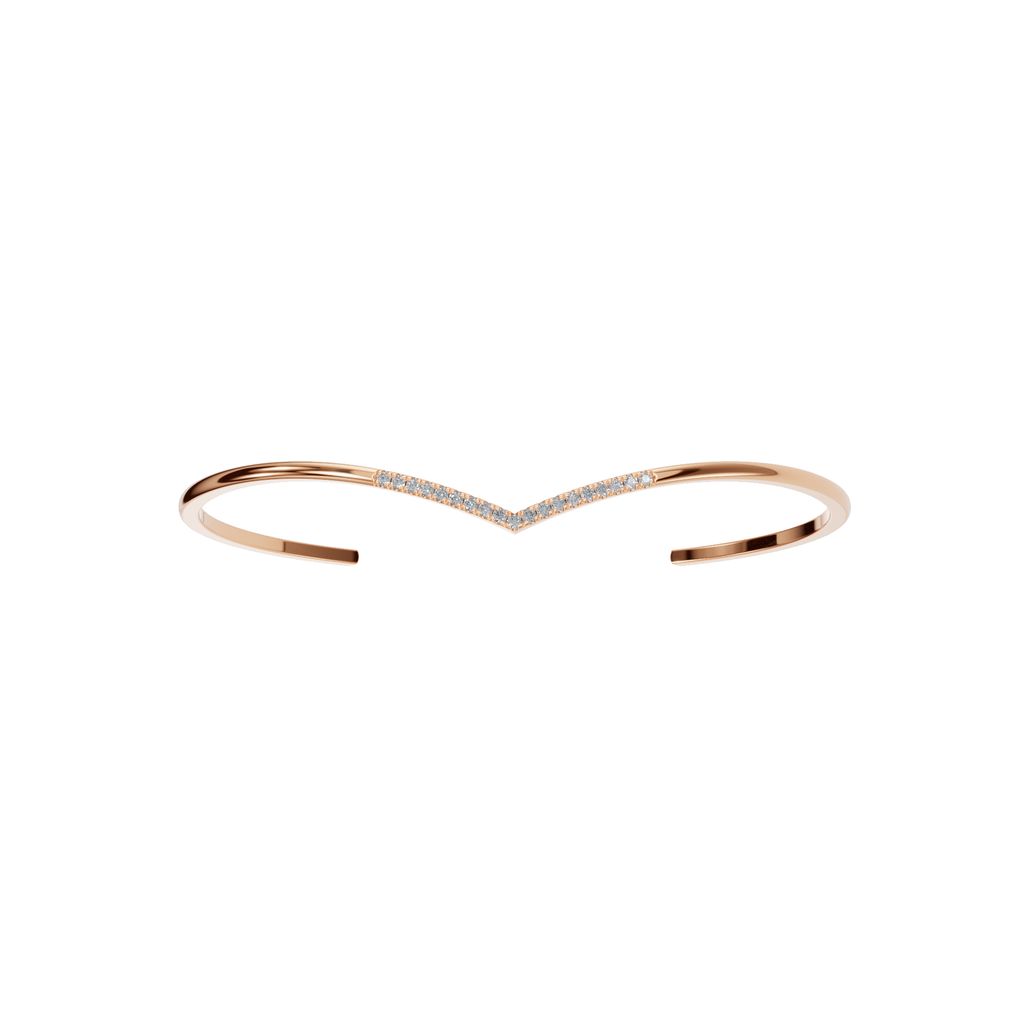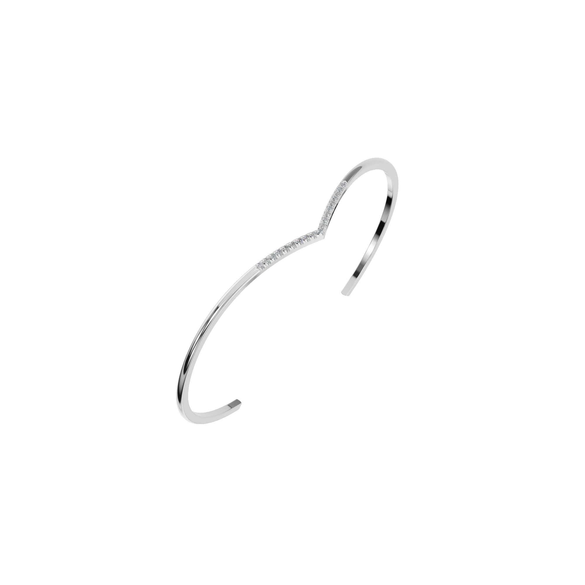 Refined, radiant, and effortlessly modern, this Lab Grown Diamond Open Bangle Bracelet is a celebration of understated opulence. Crafted in luminous gold, the bracelet features a sophisticated V-shaped contour, symbolizing strength, love, and connection. The lab grown diamonds are delicately secured in a micro pave setting, where tiny diamonds are placed closely together with minimal visible metal. Valentine’s Day & Romantic Evenings - A meaningful symbol of love and devotion.