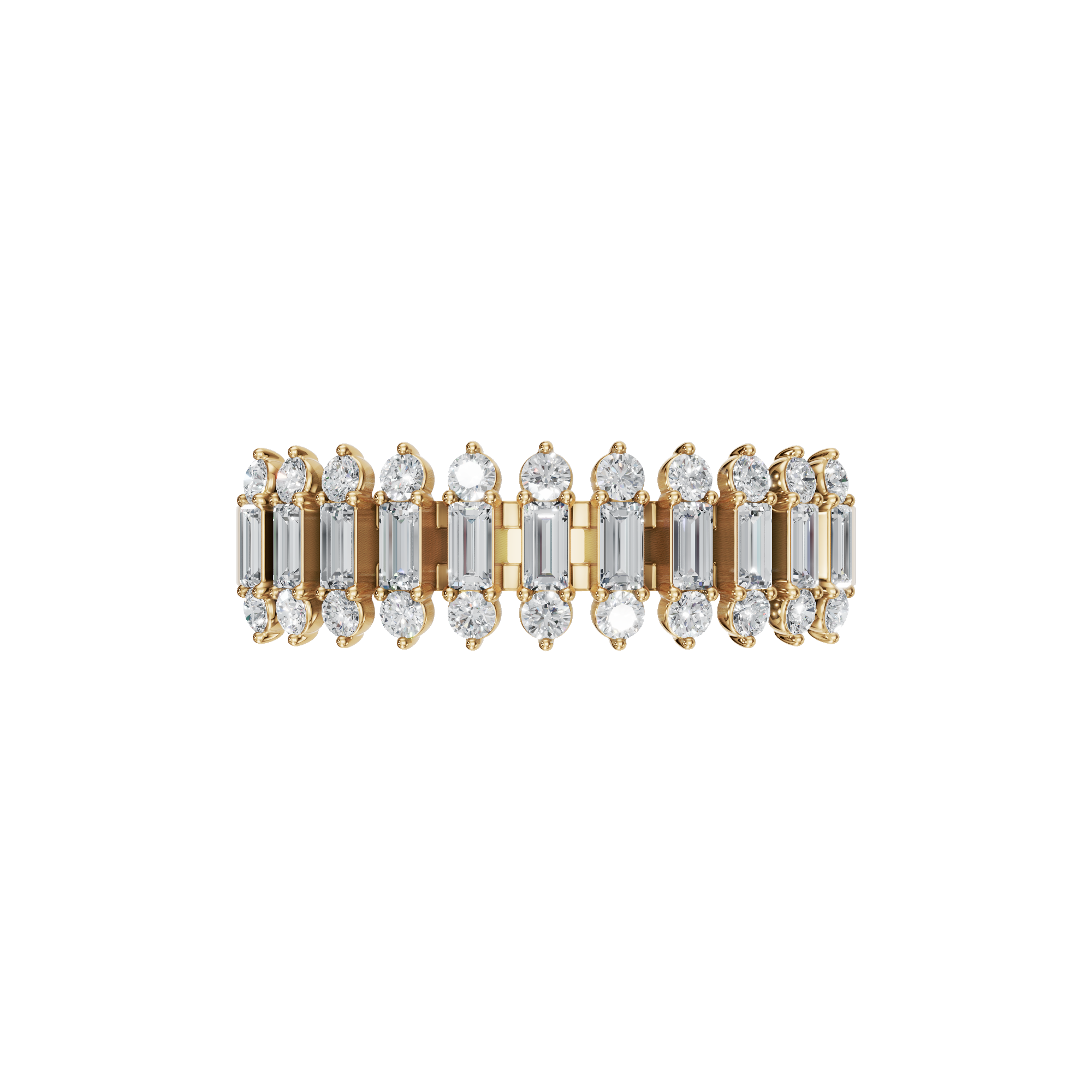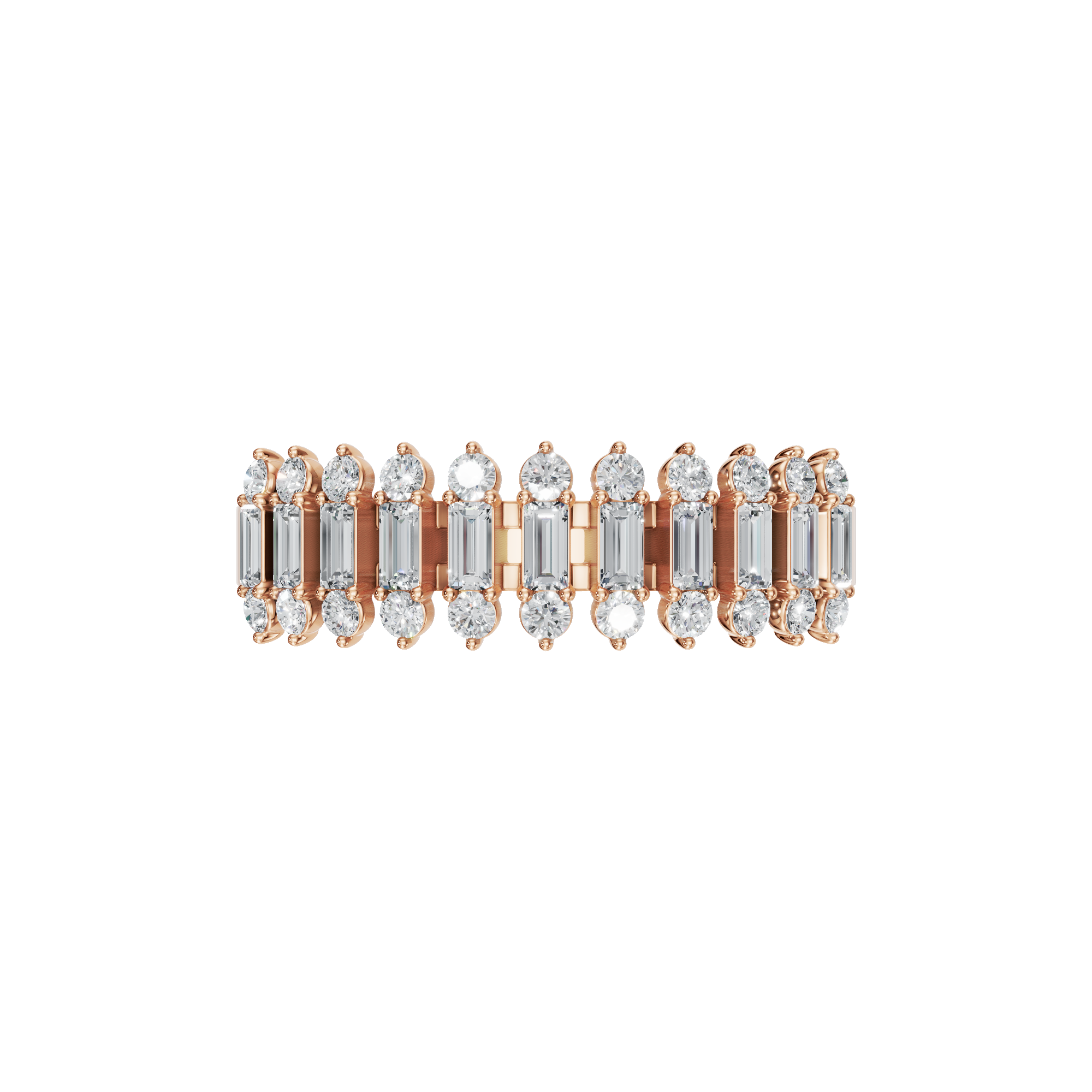 Refined and contemporary, this baguette Lab Grown diamond ring is designed to showcase elegant structure with radiant sparkle. Each baguette and round diamond is securely set in a prong setting, allowing maximum light exposure to enhance clarity and shine while keeping the design delicate and refined. Perfect as a wedding band, anniversary ring, or stylish stacking piece, this diamond ring delivers timeless elegance with a modern edge-crafted to complement any jewelry collection.