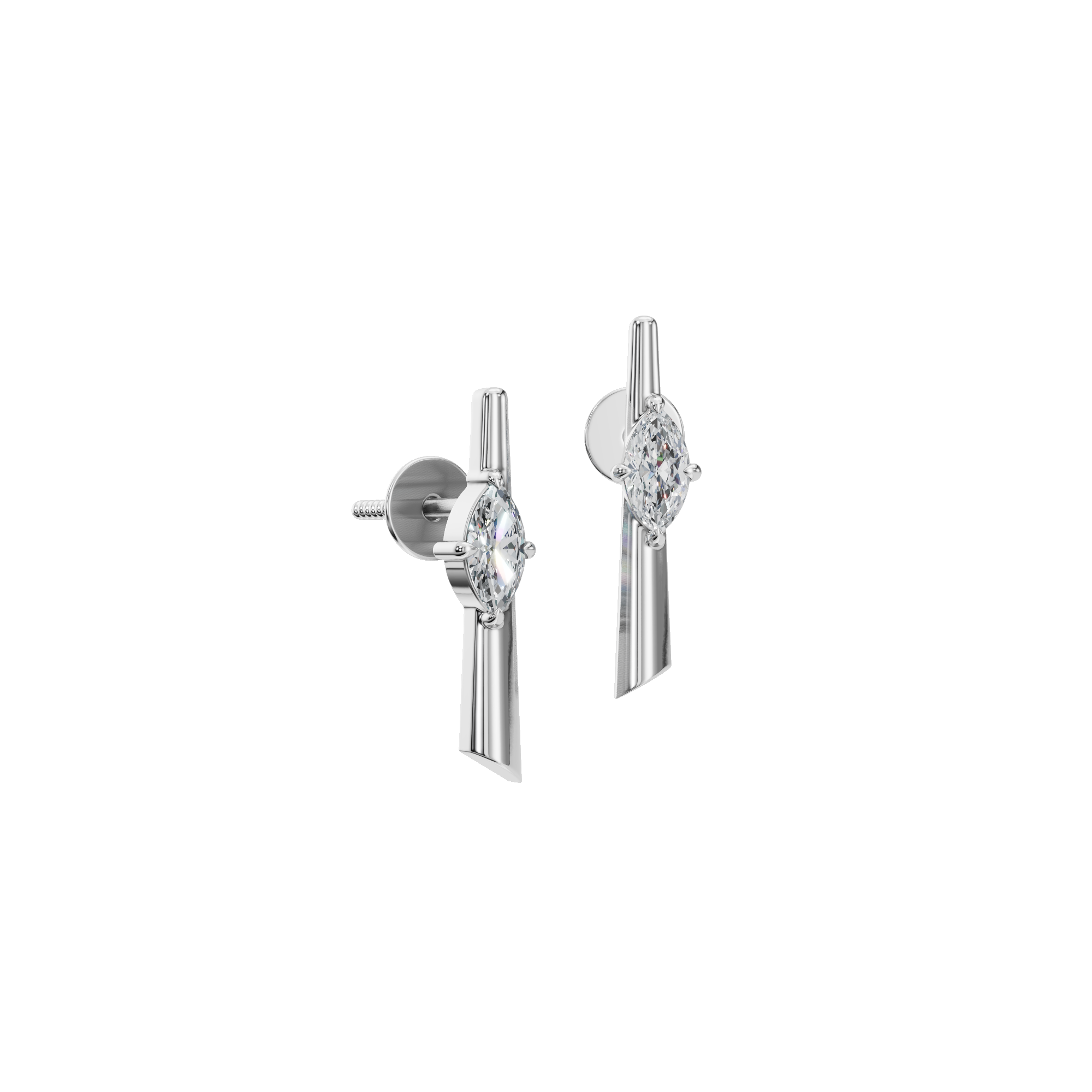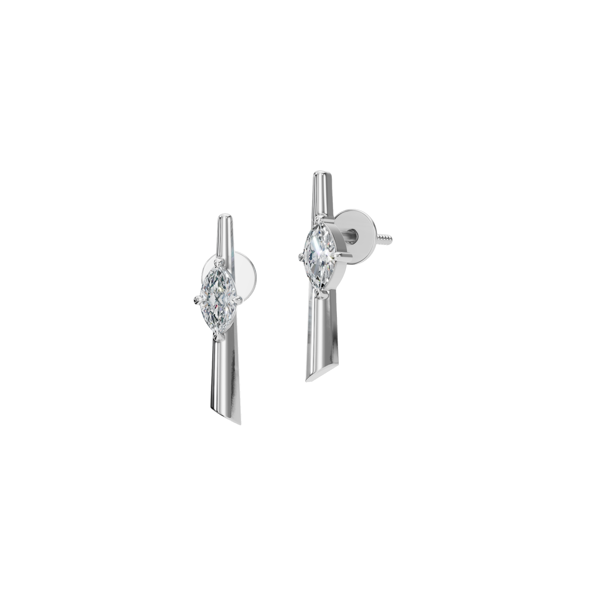 Ethereal Axis Emerald-Cut Diamond Bar Studs are a refined expression of balance, light, and modern elegance. Designed around a clean vertical axis, these earrings celebrate the quiet power of symmetry-where architectural form meets delicate brilliance. Smooth, polished metal contrasts beautifully with the diamond’s crisp geometry, evoking a sense of calm luxury rather than overt opulence. Every curve and edge is thoughtfully crafted to feel effortless, refined, and enduring.