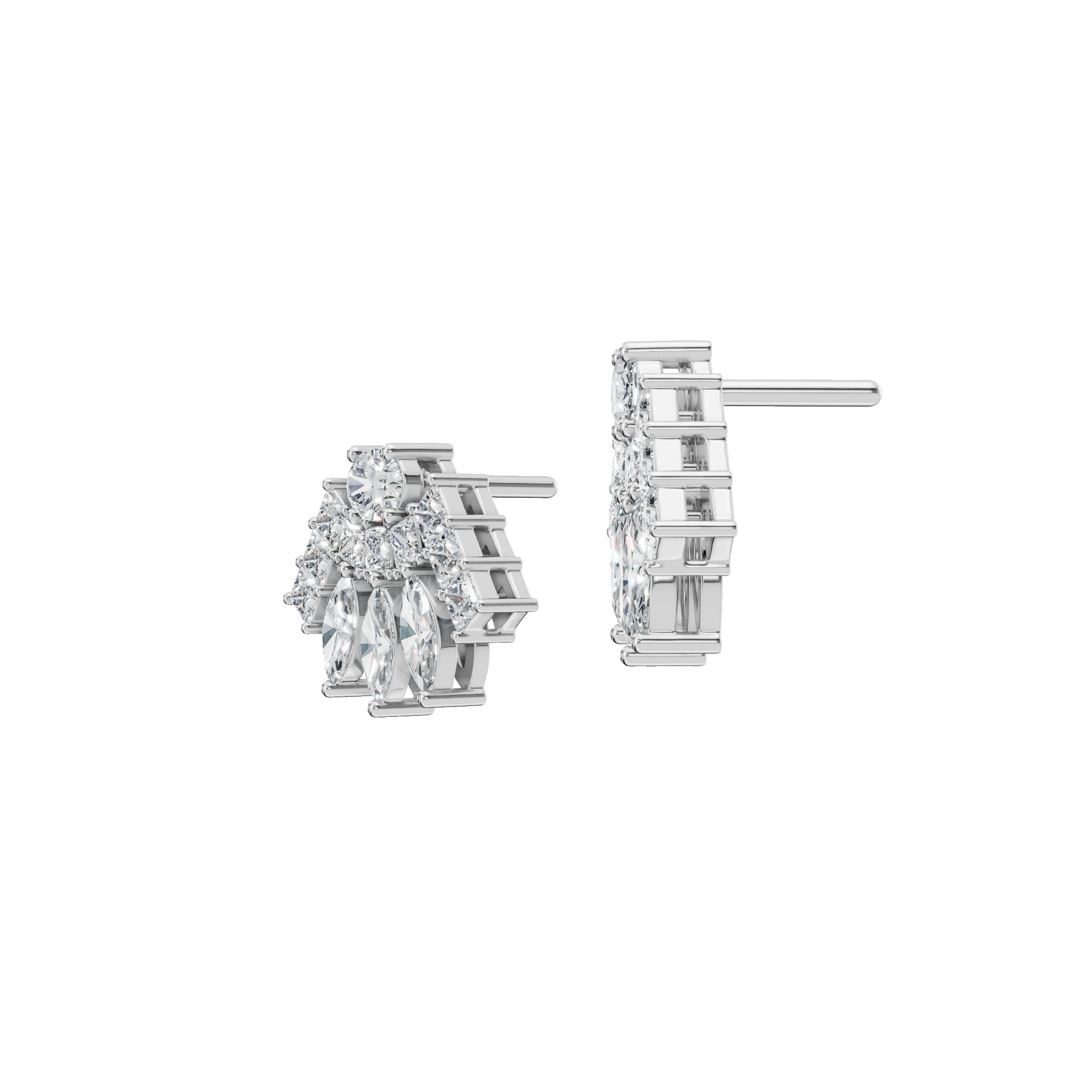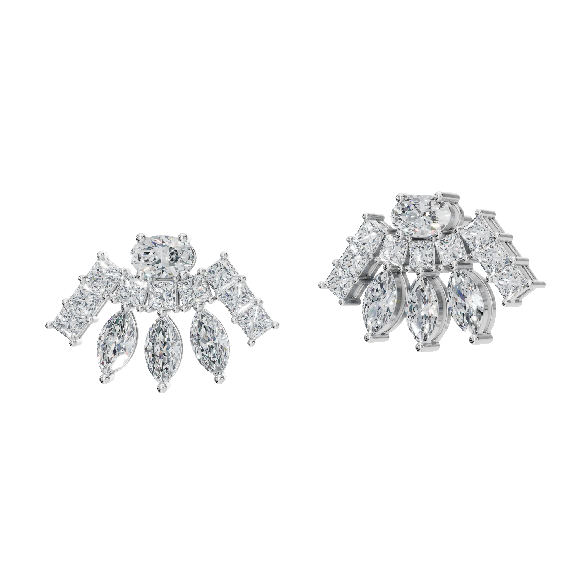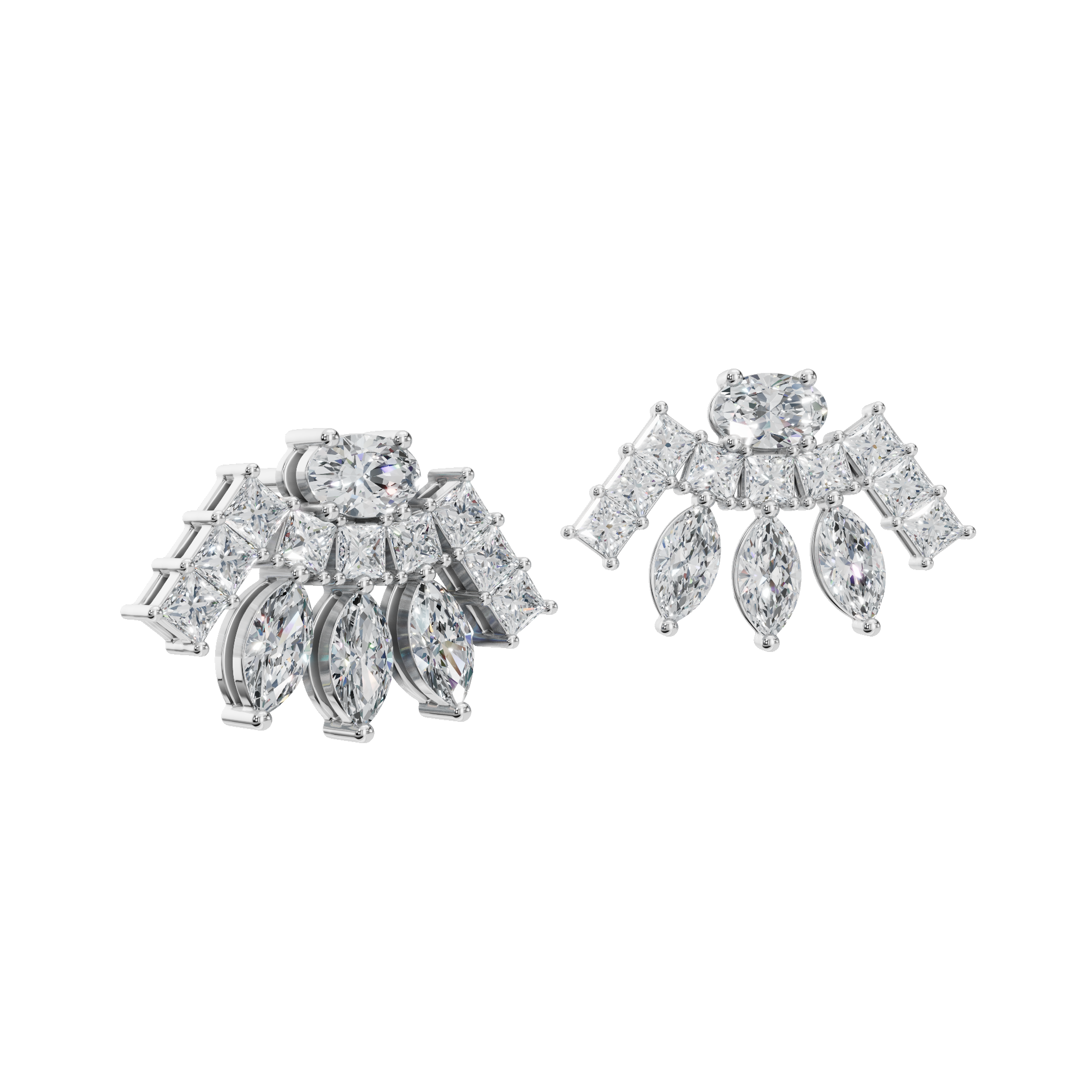 Indulge in refined brilliance with the Gold Fancy-Cut Lab Grown Diamond Fan Earrings, a striking expression of modern luxury and timeless artistry. Designed to captivate from every angle, these earrings celebrate the harmony of exquisite craftsmanship and contemporary elegance. Each earring features a radiant fan-shaped silhouette, meticulously composed of fancy-cut lab grown diamonds-including marquise, princess, and round cuts-expertly arranged to create depth, movement, and exceptional sparkle. Each earring features a radiant fan-shaped silhouette, meticulously composed of fancy-cut lab grown diamonds-including marquise, princess, and round cuts—expertly arranged to create depth, movement, and exceptional sparkle.