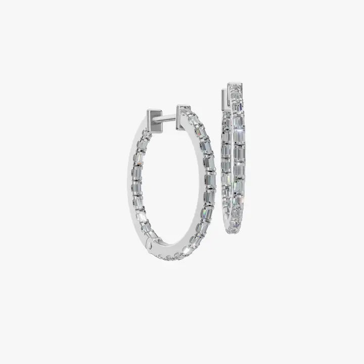 Minimal Luxe Baguette Lab Grown Diamond Hoops embody refined elegance through clean lines and thoughtful craftsmanship. Sleek baguette-cut diamonds are precisely set to create a continuous ribbon of light, offering a modern interpretation of timeless luxury. Designed for those who appreciate quiet sophistication, these hoops transition seamlessly from daytime polish to evening refinement. Their minimalist form and radiant sparkle make them a versatile essential-perfect worn alone for subtle impact or layered with other fine jewelry for a curated, contemporary look. Crafted to endure, these earrings celebrate the beauty of simplicity elevated by exceptional detail.