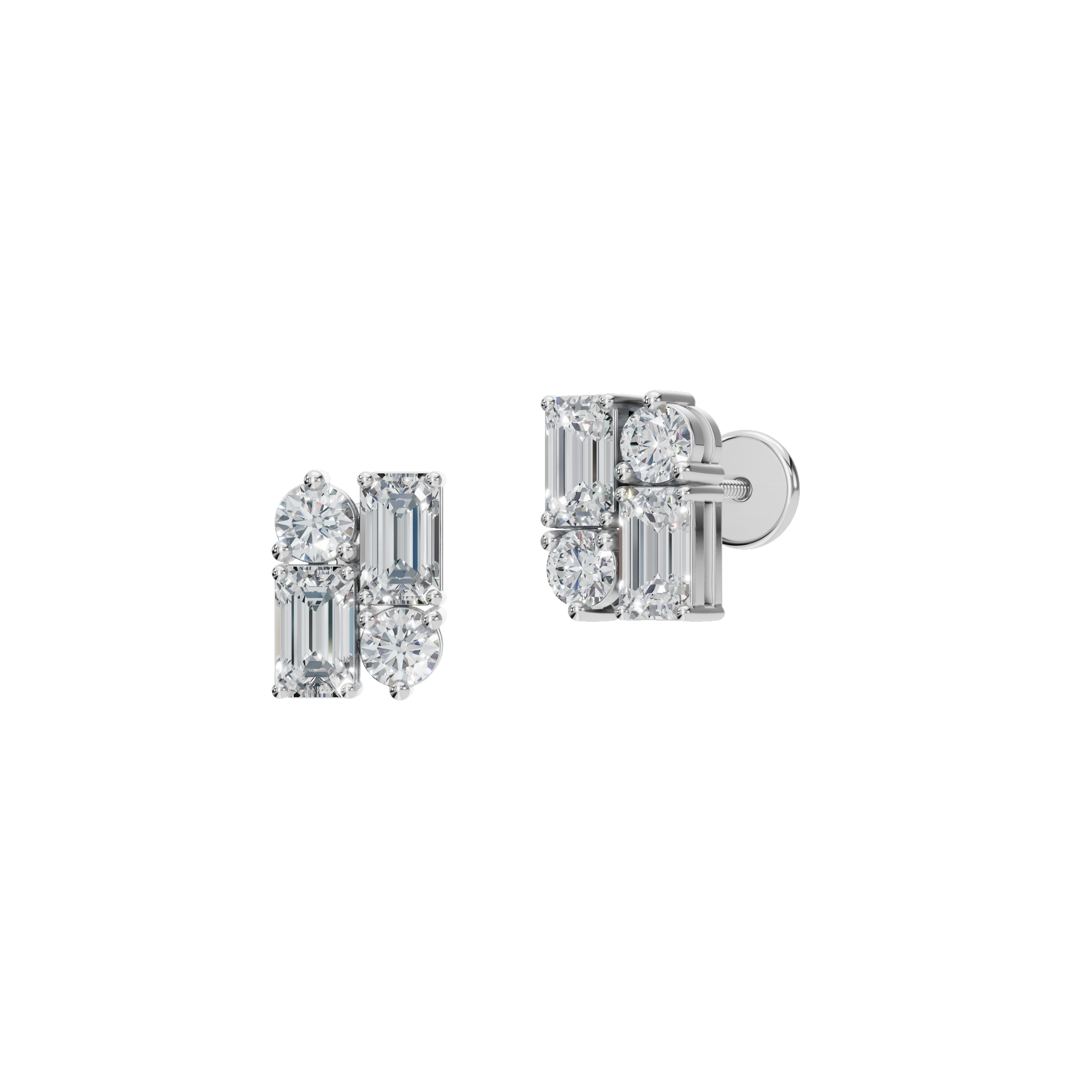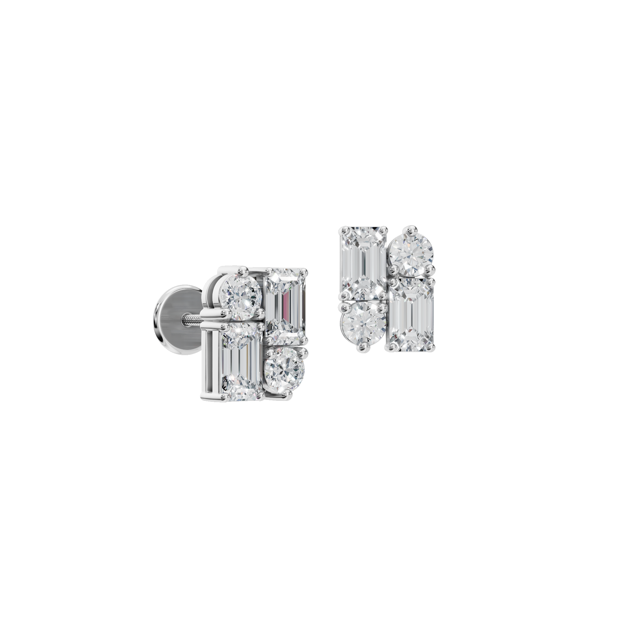 An expression of contemporary refinement and architectural beauty, The Modern Facet Stud Earrings are designed for those who appreciate precision, balance, and elevated luxury. This distinctive design brings together the crisp geometry of emerald-cut diamonds with the timeless radiance of round brilliant diamonds, forming a sculptural cluster that feels both modern and enduring. Meticulously crafted for everyday elegance and evening distinction, The Modern Facet transitions effortlessly across occasions.