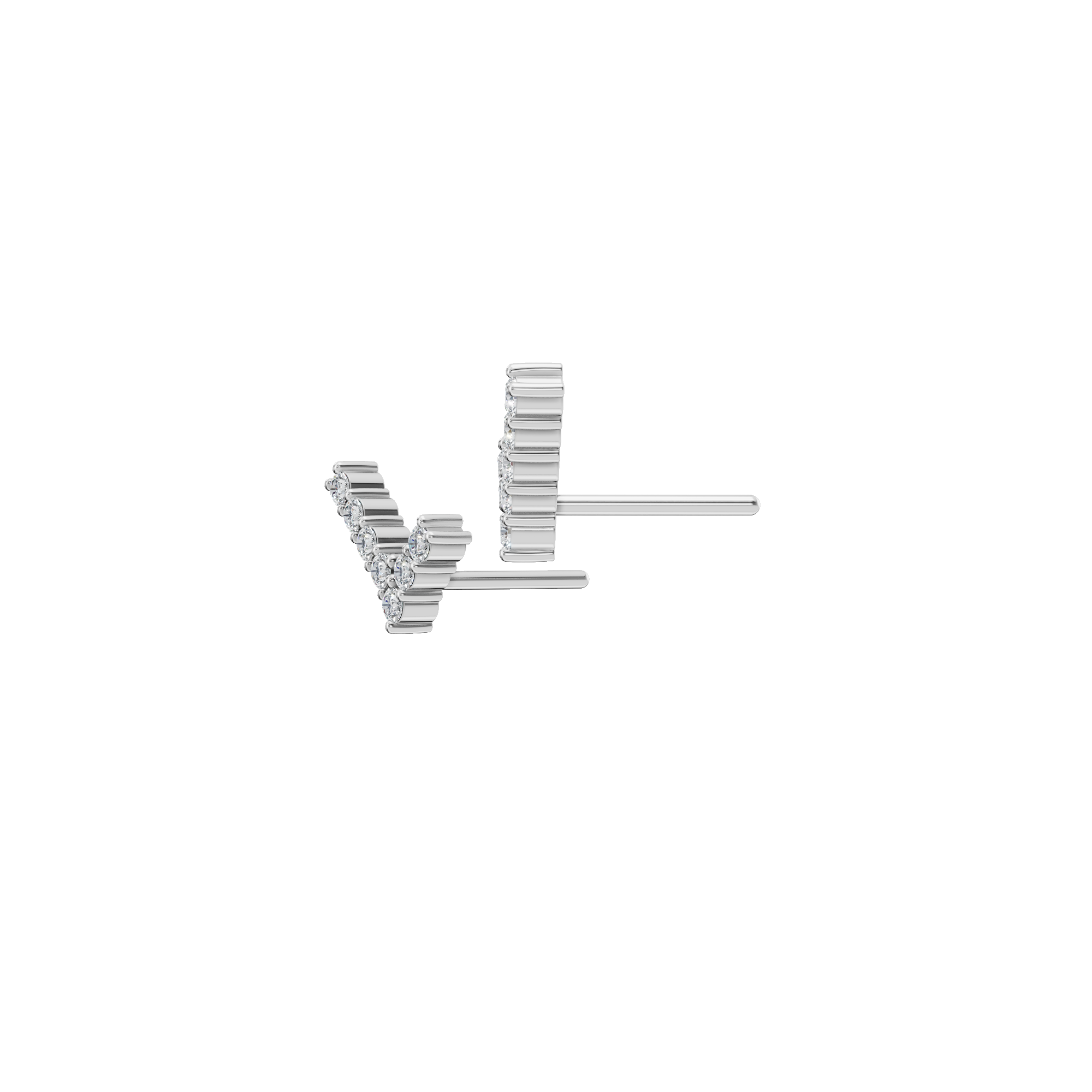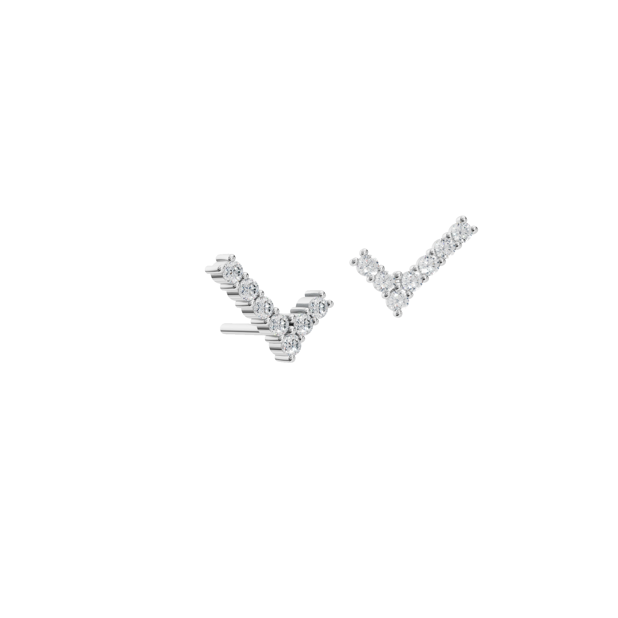 Modern Goddess V-Line Lab Grown Diamond Stud Earrings are a refined expression of strength and elegance, designed for the woman who radiates confidence with quiet grace. Sculpted in a sleek V-line silhouette, these earrings frame the ear with architectural beauty while allowing a row of brilliant diamonds to shimmer with effortless sophistication. Each diamond is precisely set to enhance its natural fire, creating a luminous flow of sparkle that feels both modern and timeless. The clean lines and delicate proportions make these studs endlessly versatile-perfect for elevating everyday style or adding a subtle statement to evening looks.