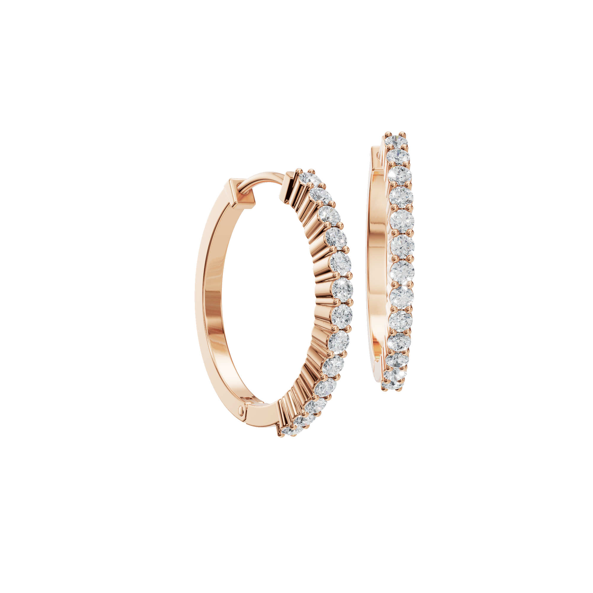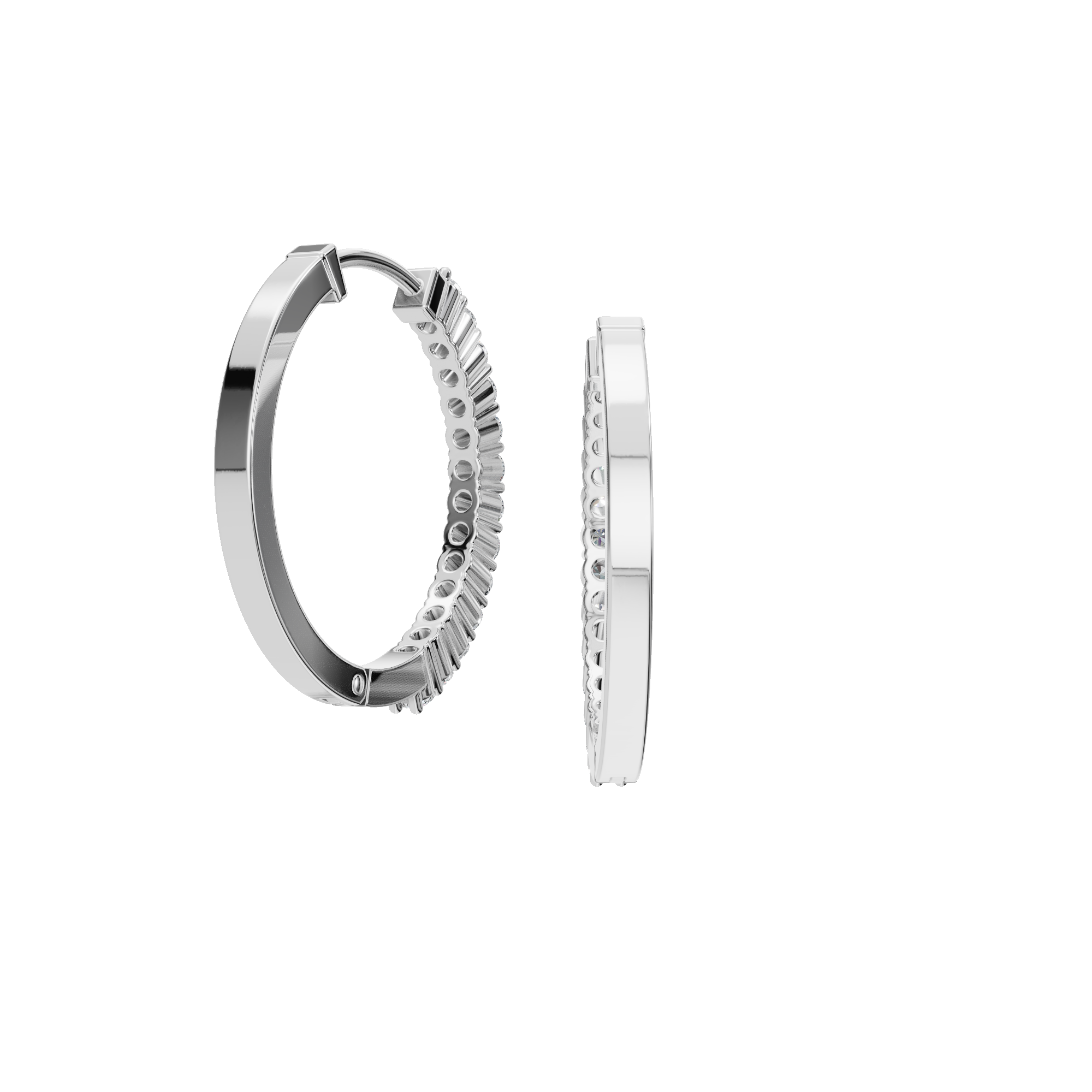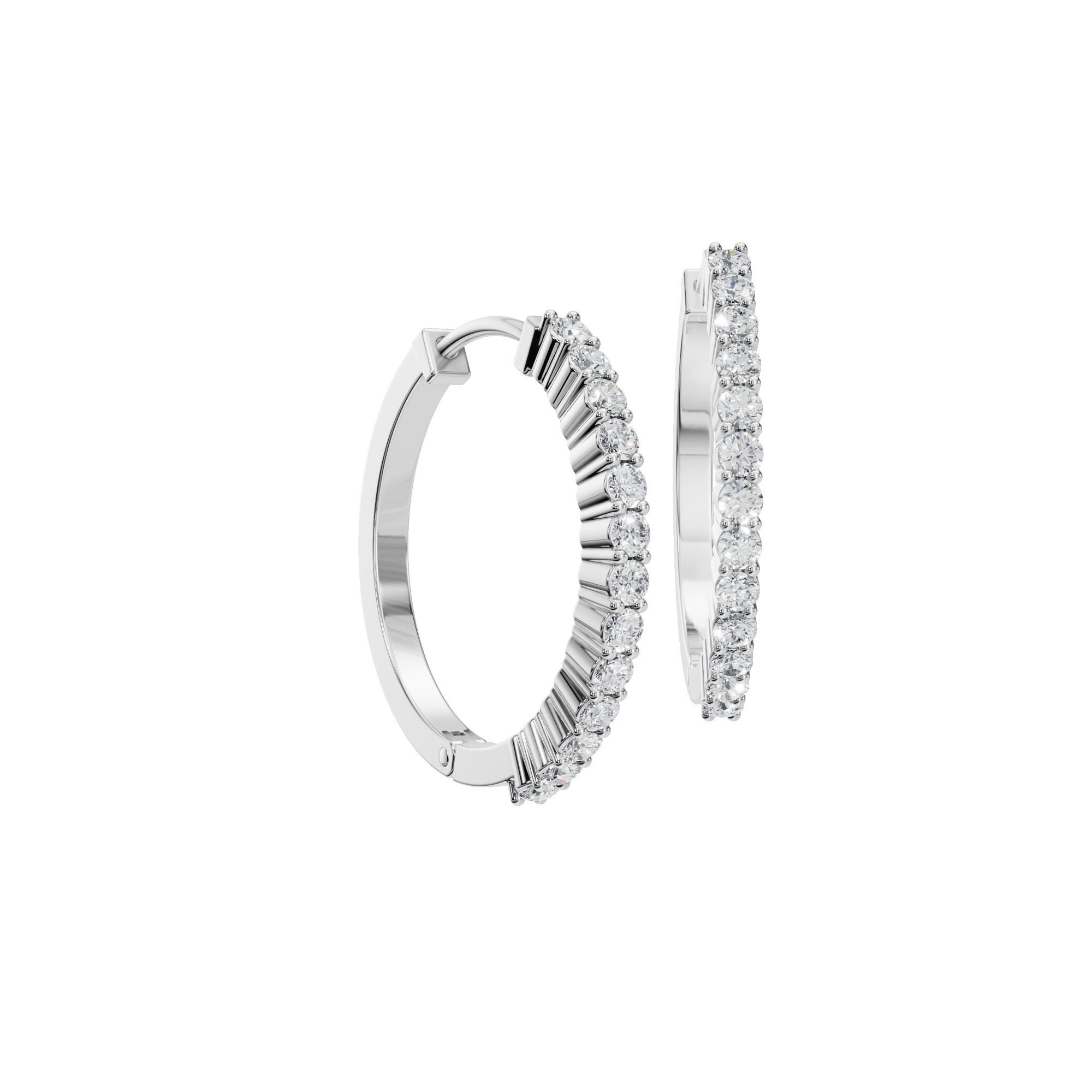 Gracefully radiant and impeccably crafted, these Sparkling Diamond Hoop Earrings are a timeless expression of refined luxury. Designed to illuminate every movement, each hoop is adorned with a seamless row of brilliant diamonds that catch the light from every angle, creating an elegant glow that feels both modern and enduring. Expertly set in a sleek pave setting, the diamonds are nestled closely together, allowing maximum brilliance while maintaining a smooth, refined silhouette. Whether worn as an everyday indulgence or saved for special moments, these diamond hoop earrings exude effortless sophistication.