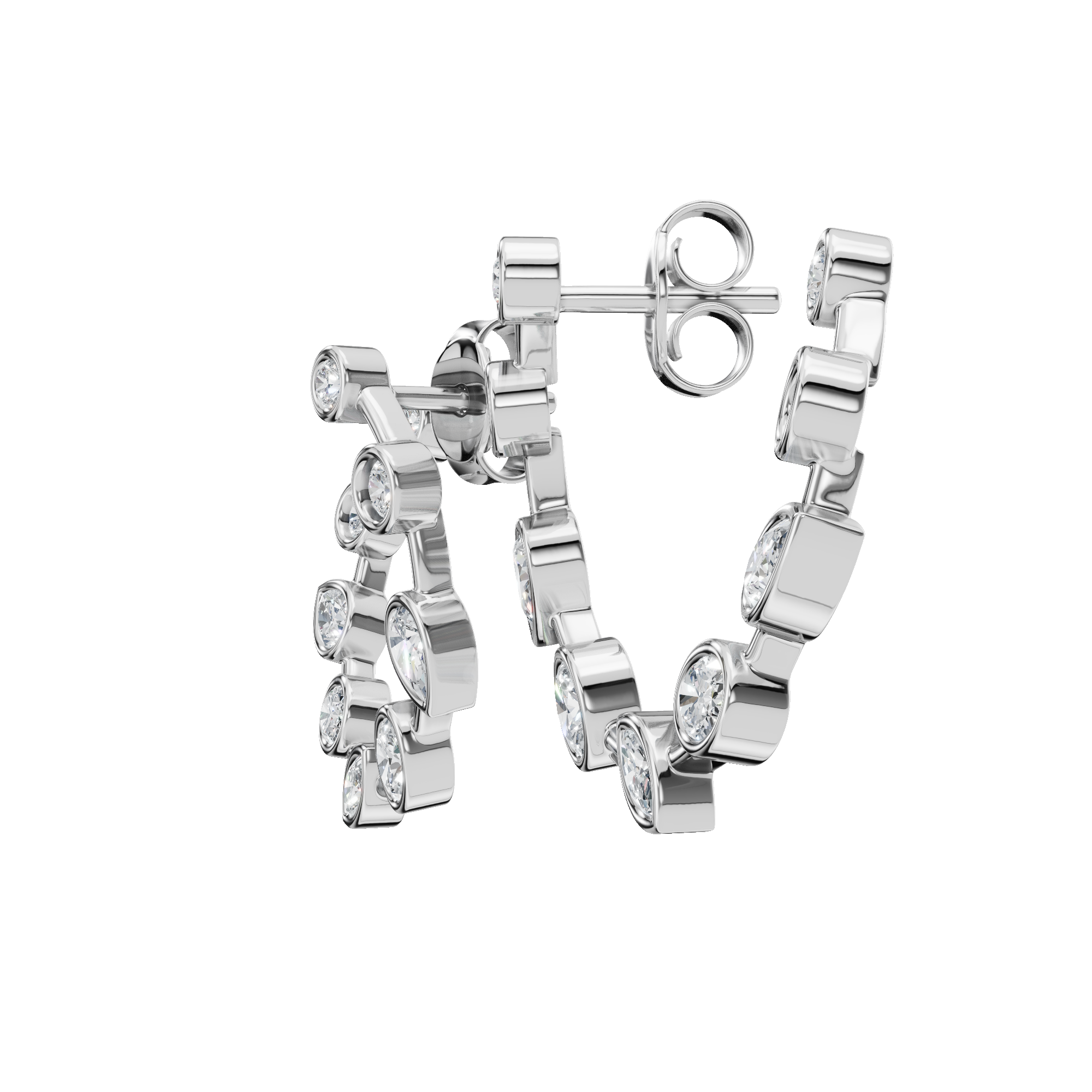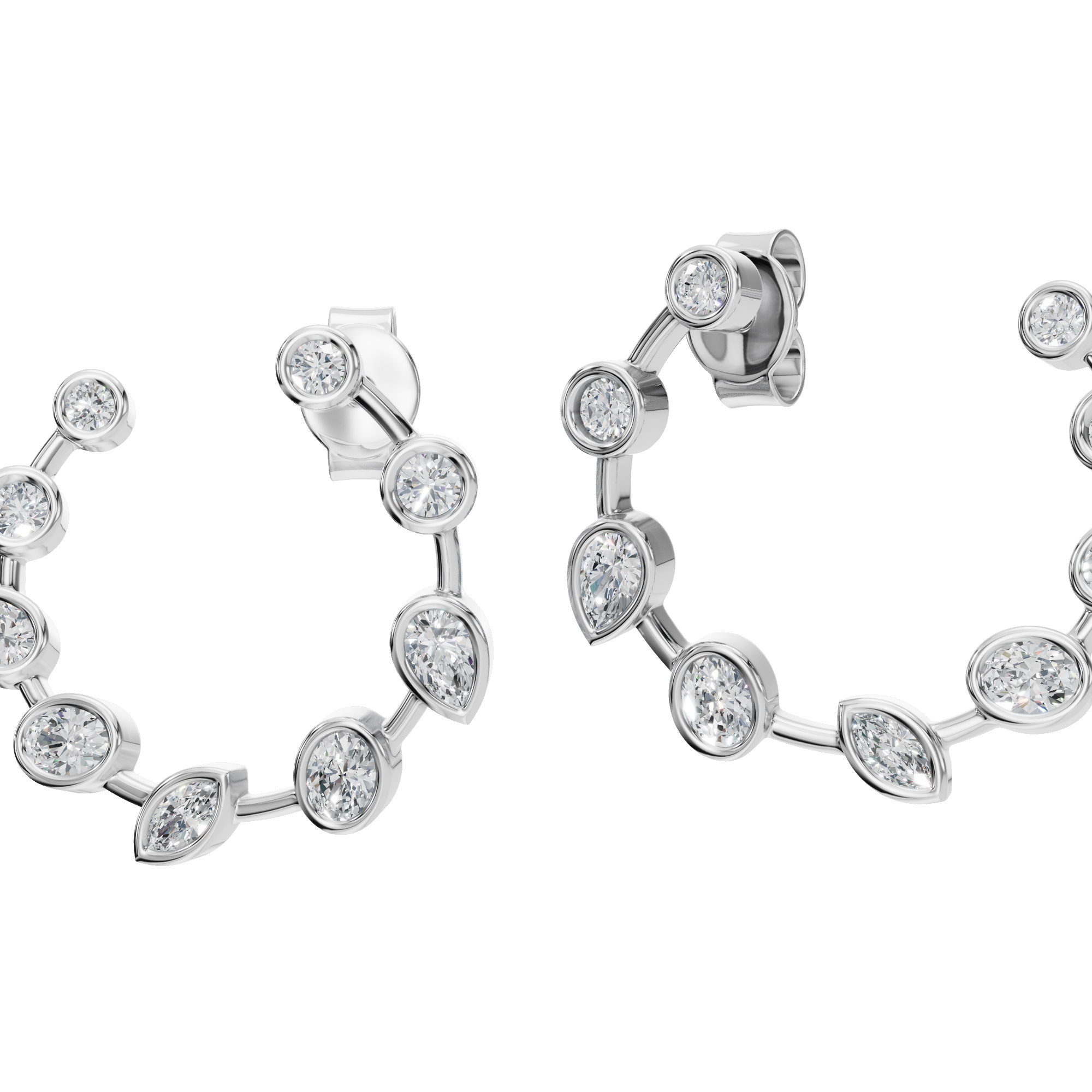 Modern Muse Bezel-Set Lab Grown Diamond Hoops are designed for the woman who loves understated luxury with a contemporary edge. Featuring a graceful sequence of bezel-set diamonds, these hoops blend smooth, sculpted metal with brilliant sparkle for a refined yet modern look. The bezel setting enhances each diamond’s radiance while offering a clean, secure finish that feels effortless to wear. Perfect for office wear sophistication or elevated evening styling, these diamond hoops sit comfortably on the ear and move beautifully with you.