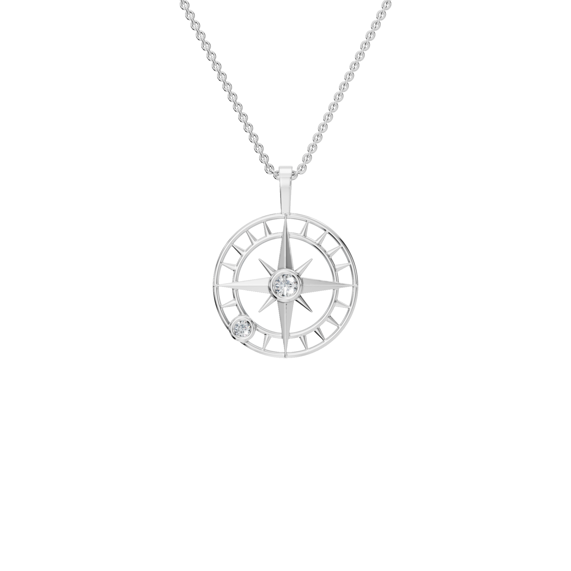 The Celestial Compass Diamond Pendant Necklace is a radiant symbol of guidance, ambition, and luminous destiny. Designed like a finely sculpted compass rose, this exquisite pendant captures the poetry of direction and the brilliance of inner light. The central diamond is secured in a smooth bezel setting, offering a sleek, modern look while providing excellent protection. Graduations & Milestones – Representing new journeys and bold beginnings.