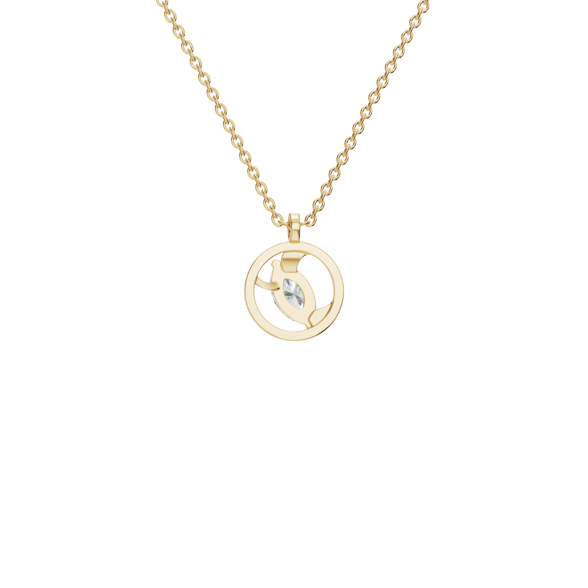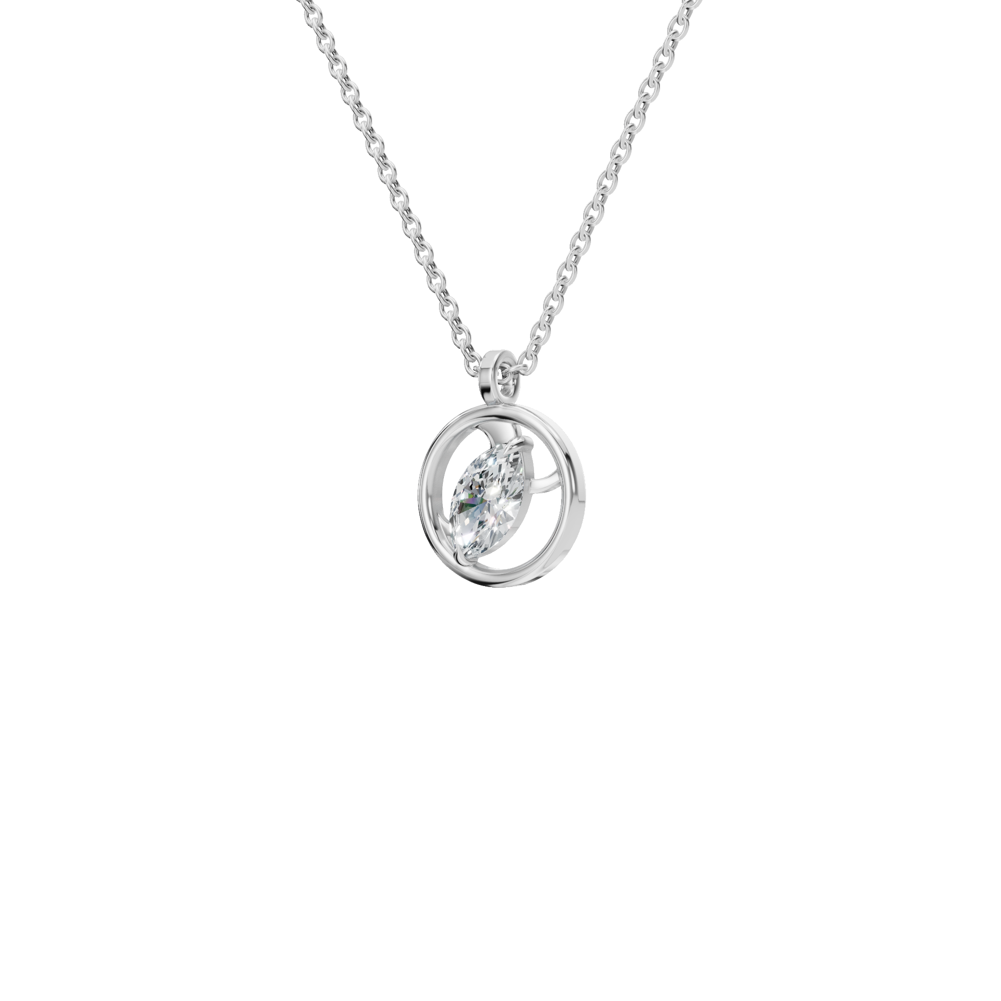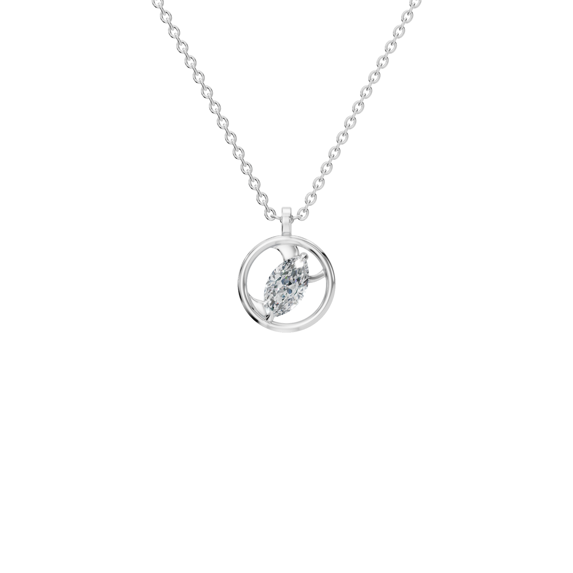 A celebration of light, balance, and modern elegance, the Radiant Orbit Lab Grown Diamond Necklace is designed to glow with quiet confidence. At its heart lies a brilliant lab grown diamond, gracefully suspended within a polished circular frame symbolizing continuity, harmony, and timeless beauty. The open-orbit design allows light to flow freely around the diamond, creating a mesmerizing gleam with every movement. The center diamond is secured in a refined prong setting that appears to float within an open circular halo.