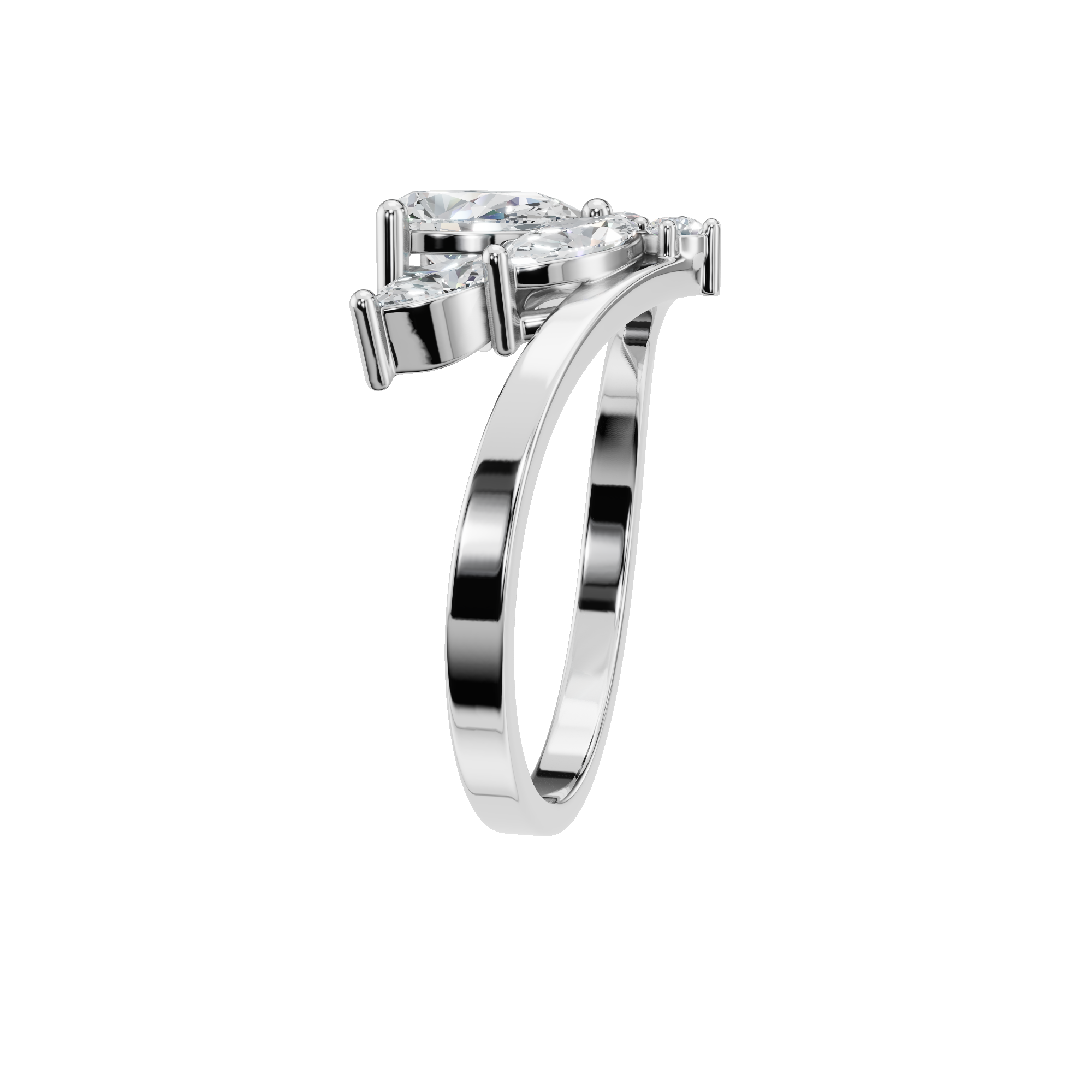Pear Diamond Ring with Floral Cluster Design